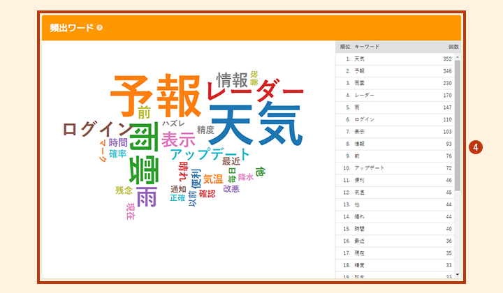 また、ユーザーが最初に見ると思われるレビューや、レビュー内の頻出ワードを表示します。